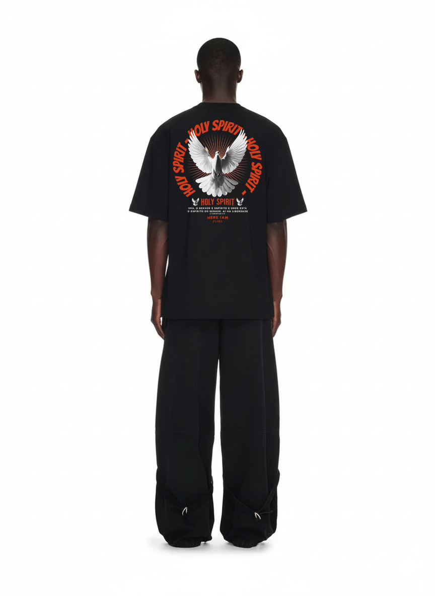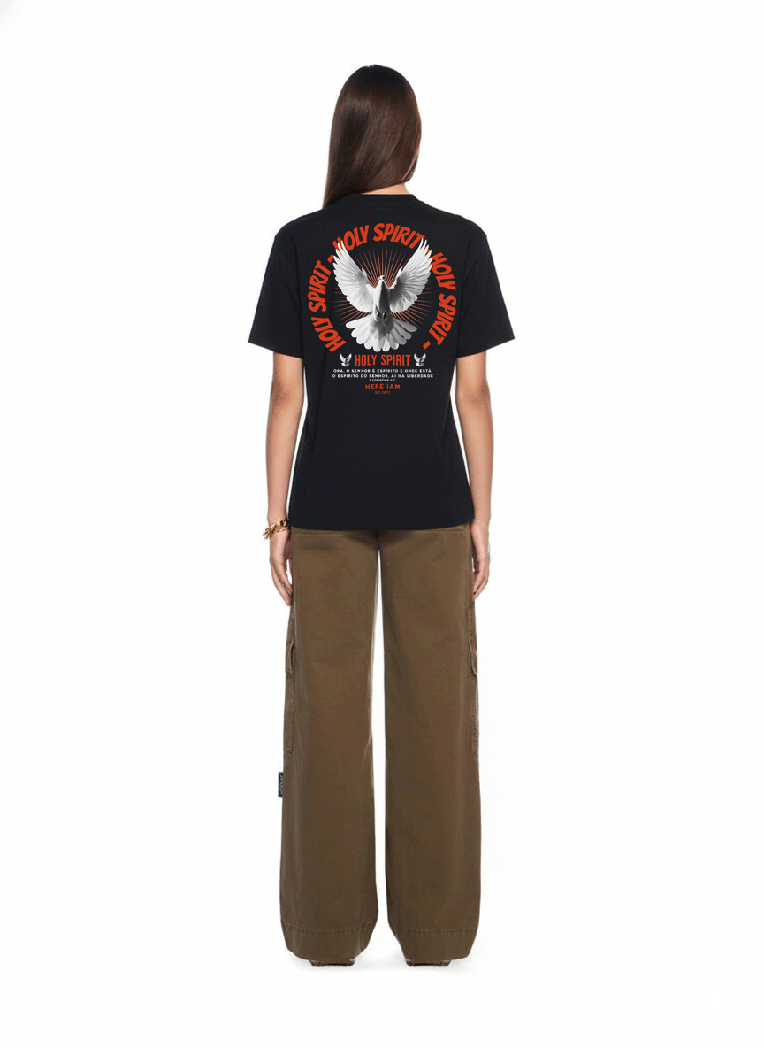 A Camiseta HOLY SPIRIT é mais do que uma peça de roupa — é uma declaração de fé e propósito. Com design impactante e a representação simbólica da pomba, ícone da presença e paz do Espírito Santo, ela carrega a mensagem de 2 Coríntios 3:17: Ora, o Senhor é Espírito; e onde está o Espírito do Senhor, aí há liberdade.